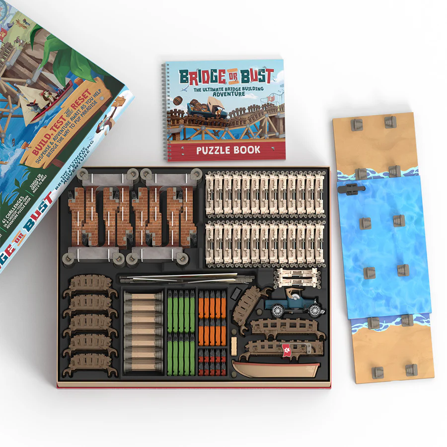 Bridge or Bust is for both kids and adults (8+). It’s simple to learn, but a massive challenge to solve all 61 puzzles.