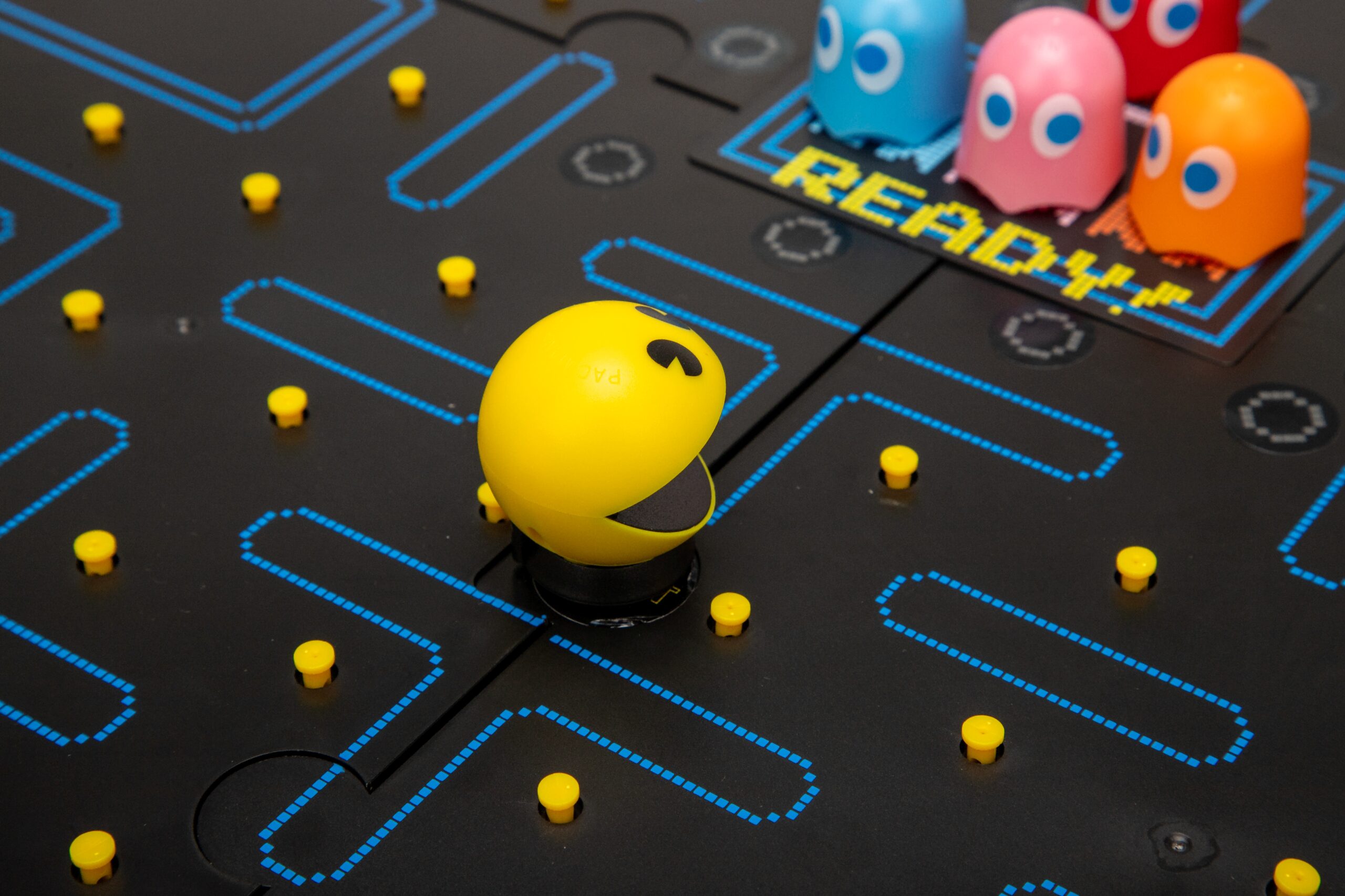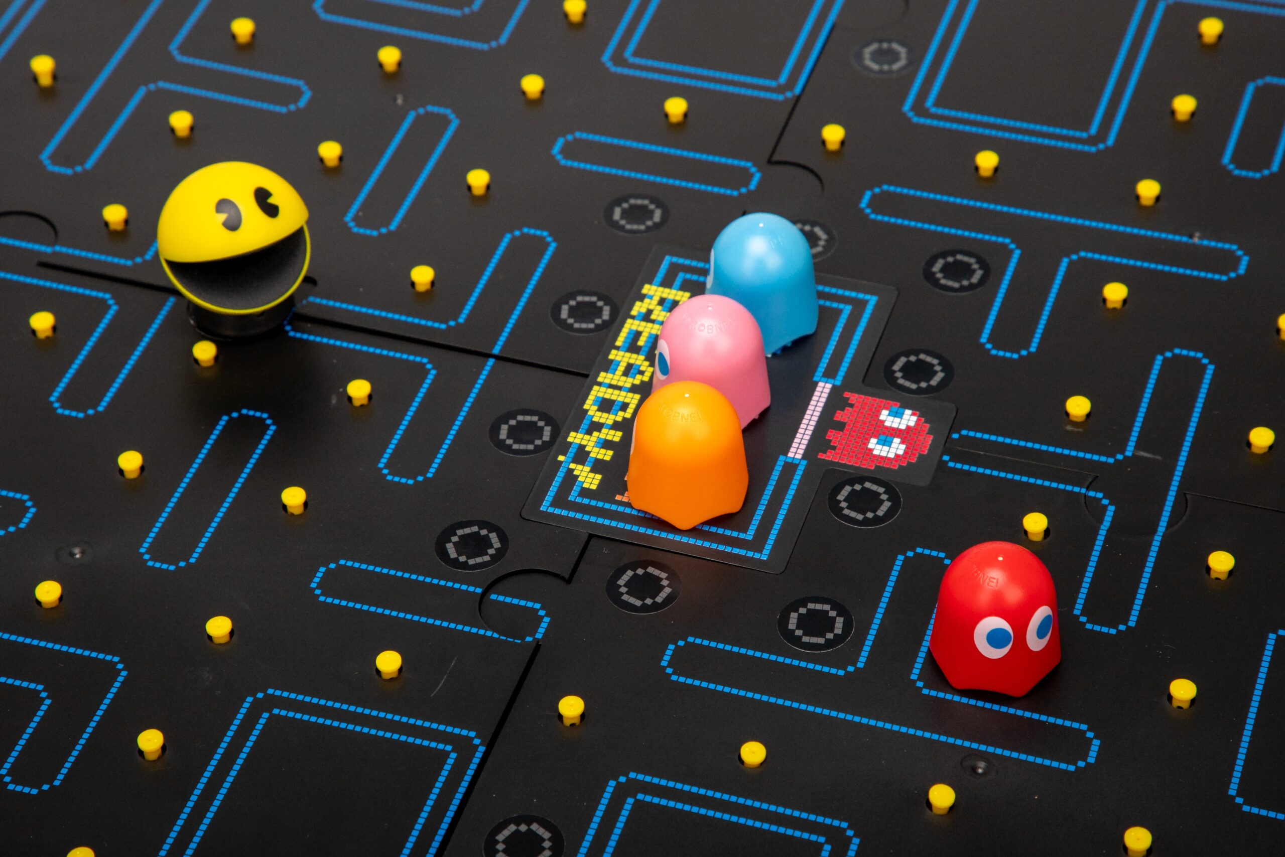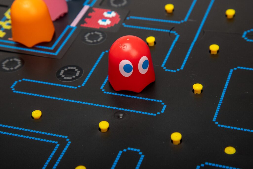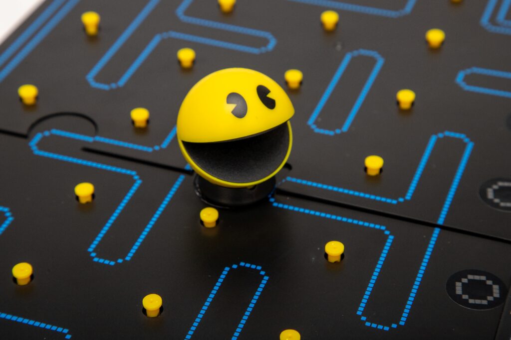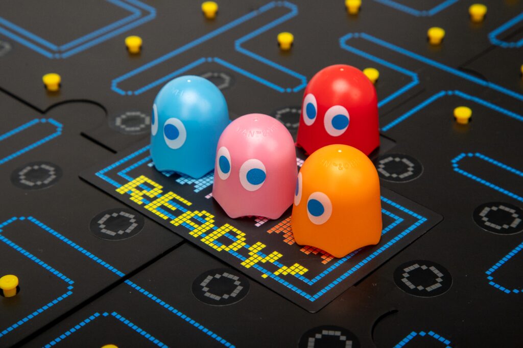 Pac-Man Board Game A bout the Toy Arcade classic – rediscover this classic arcade experience with Pac-Man the board gameCollaborative play – play as Pac-Man or Blinky, Pinky, Inky or Clyde in this collaborative family fun gameAuthentic sounds – as Pac-Man moves around the board he makes the classic “waka, waka, waka” Aracade soundsAges – 10 years +Players – 2 to 5 players Gallery