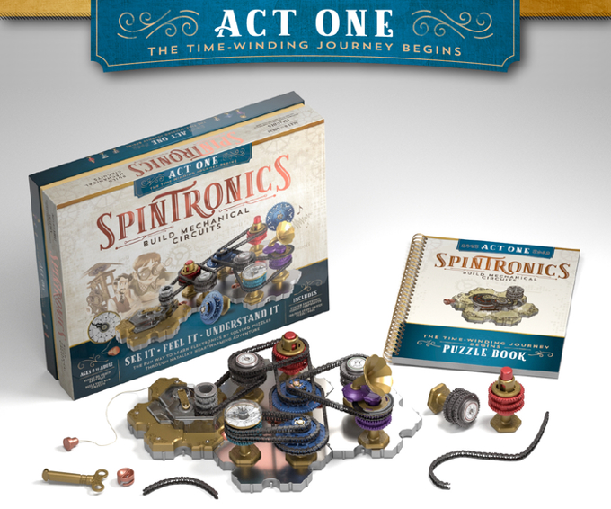Begin the time-winding journey with Spintronics Act One. Get started building fascinating mechanical circuits as you solve 67 fun, challenging puzzles from beginner to intermediate difficulty.
