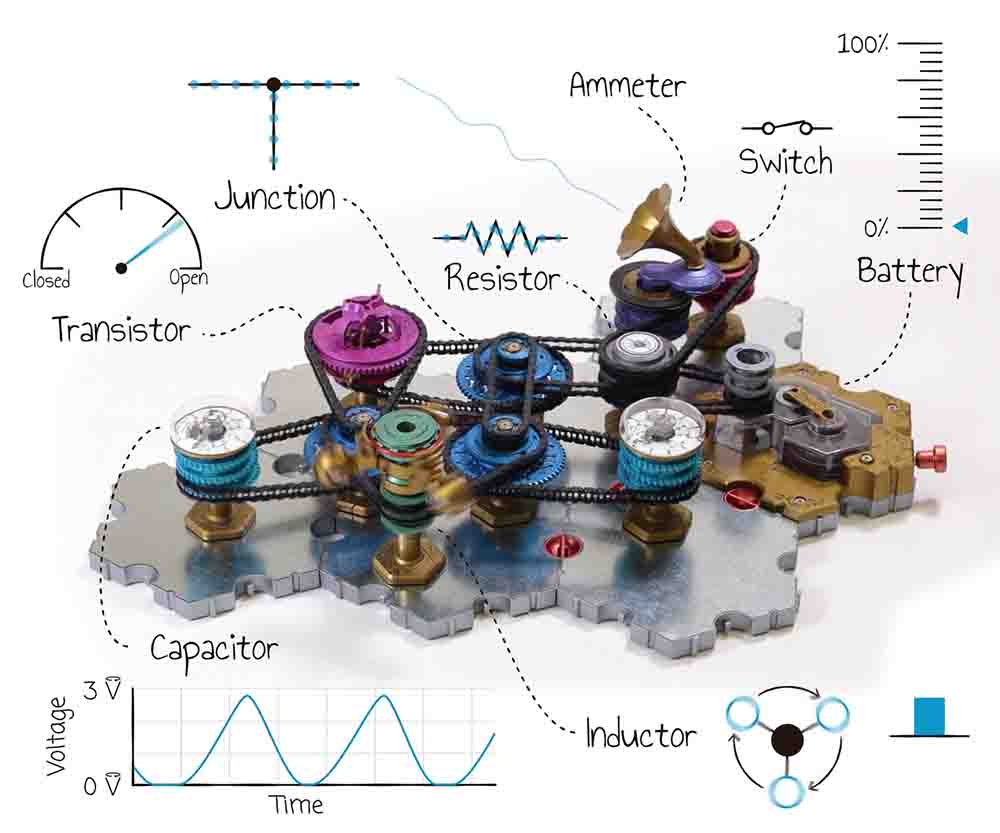 Spintronics is a new game (ages 8 to adult) from the makers of Turing Tumble where players build mechanical circuits to solve puzzles. Players feel the pull of voltage and see the flow of current as they discover electronics in a tangible and deeply intuitive way, using the first physical equivalent of electronics ever built. It’s fun, fascinating, easy to learn, and irresistible to play.